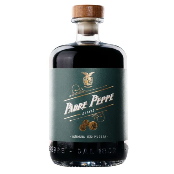 Amaro Padre Peppe Elixir: di colore scuro brillante, con aroma di noci verdi e spezie d’oriente, oltre alle riconosciute virtù digestive è anche un ottimo tonificante. Può essere consumato liscio, a temperatura ambiente o ghiacciato, ma anche come aggiunta al caffè. Caldo è un ottimo punch grazie anche alle spezie di cui è composto. Un gusto che stimola sensazioni dolci amaricanti e persistenti.