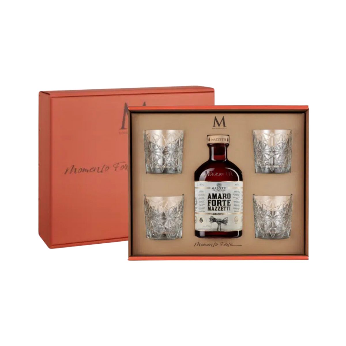 Confezione con Amaro ‘Forte’ Mazzetti + 4 Bicchieri