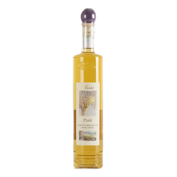 Grappa di Brachetto ‘Piasì’ Berta: grappa ottenuta dalla distillazione delle vinacce di Brachetto. Al termine del processo di lavorazione la Grappa viene fatta riposare per 12 mesi in legno. E’ caratterizzata da un colore ambrato e brillante, decisamente affascinante alla vista. I profumi che avvolgono sin dai primi istanti il naso sono profondi e schietti, manifestando evidenti note floreali. Il sorso è morbido e aromatico, con sentori di vaniglia e rosa.