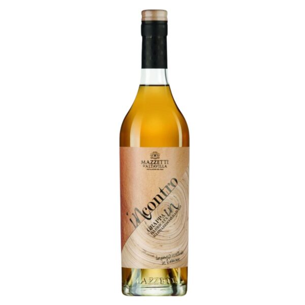 Grappa Incontro Barbaresco & Barolo – Mazzetti d’Altavilla : è grappa ottenuta appunto da’incontro di due grappe come Nebbiolo da Barolo e da Barbaresco. Un Distillato davvero “In”, dal profilo armonioso, reso imponente dall’invecchiamento in Rovere di Fontainebleau. Nel bicchiere presenta un colore oro intenso. Al naso emana sentori di frutta essiccata, vaniglia e spezie dolci. In bocca è di giusta morbidezza e aromaticità, con sentori di vaniglia e tabacco.