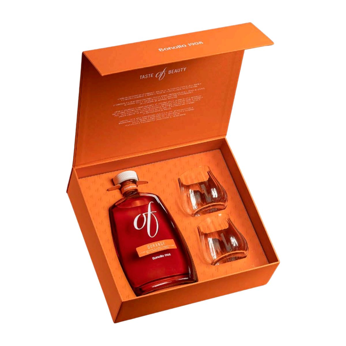 Confezione con Grappa Dorange Of Bonollo + 2 Bicchieri