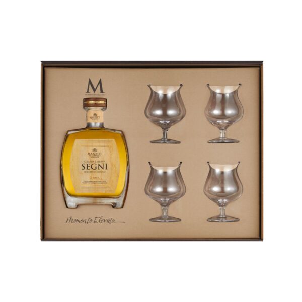 Confezione con Grappa Riserva Segni Mazzetti D’Altavilla + 4 Bicchieri