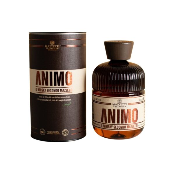 Whisky Animo Mazzetti D’Altavilla: un whisky lungamente invecchiato in pregiate essenze lignee, dalle fresche note di tostatura d’orzo, intenso gusto di vaniglia ed una chiusura tannica estremamente persistente. Alla vista si presenta di color ambrato intenso con riflessi dorati. Al naso è ricco, ampio, con note di lievito e morbida tostatura che tende fra il vanigliato e i sentori di pasticceria. Ottimo abbinato a del cioccolato extra fondente.