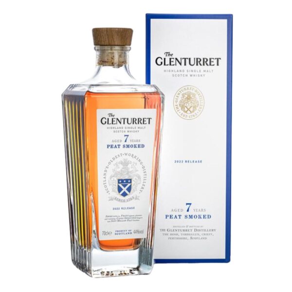 Whisky Glenturret 7 YO Peat Smoked: si distingue per l’uso della torba durante il processo di maltaggio, che conferisce a questo whisky un carattere forte e distintivo. L’invecchiamento per sette anni, in botti ex-sherry accuratamente selezionate, consente al liquore di assorbire complessità e sfumature aromatiche uniche; il risultato è un perfetto equilibrio tra la robustezza del fumo e la sottile dolcezza del malto. Alla vista si presenta color ambra brillante. Al naso le note leggere di fumo si uniscono alla vaniglia e ad altri aromi dolci. Seguono agrumi, quercia verde e uva sultanina. Al palato è complesso e raffinato, con una dolcezza di fondo che accompagna tutto il sorso, con la torba ben in evidenza. TEMPERATURA DI SERVIZIO: 18-20°C