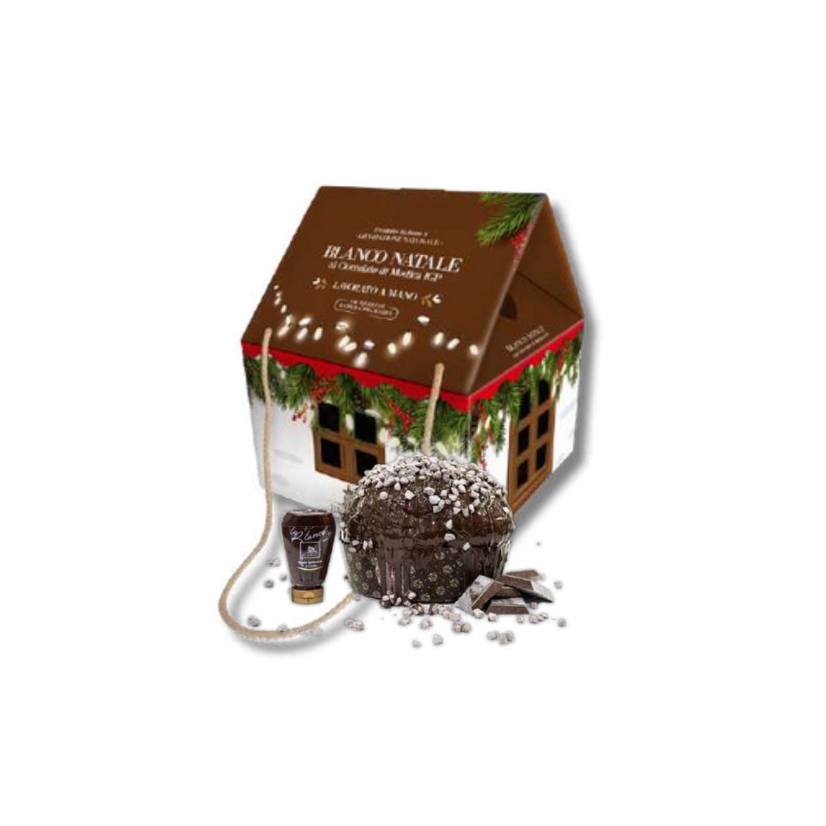 Casetta Panettone al Cioccolato di Modica IGP + squeezer di Crema al Cacao Blanco Dolci: si parte dalle migliori materie prime, dalle uova al burro di qualità premium. Segue un processo di lievitazione lenta, ben 72 ore, arricchito dal costante lavoro del lievito madre. Nasce così un prodotto dalla consistenza soffice e delicata, un vero piacere per il palato. A completare il tutto, l’irresistibile crema al cioccolato; contenuta in un pratico squeezer da 190 g. Incartato in una bellissima scatola a forma di Casetta.