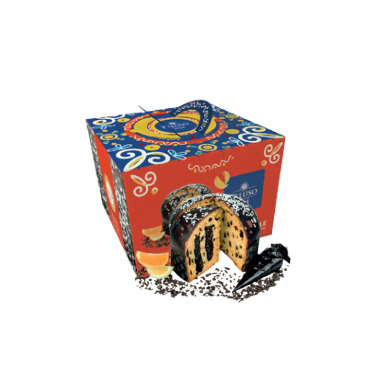 Panettone agli agrumi con cioccolato di modica igp e crema di cioccolato di modica agli agrumi in sac a poche Peluso: panettone tradizionale ottenuto dalla lievitazione naturale di 36 ore e da ingredienti accuratamente selezionati. Un impasto leggero, morbido. Al suo interno troverete la crema al cioccolato di Modica IGP agli agrumi in sac à poche (da 200 g) per poter farcire il tuo panettone.