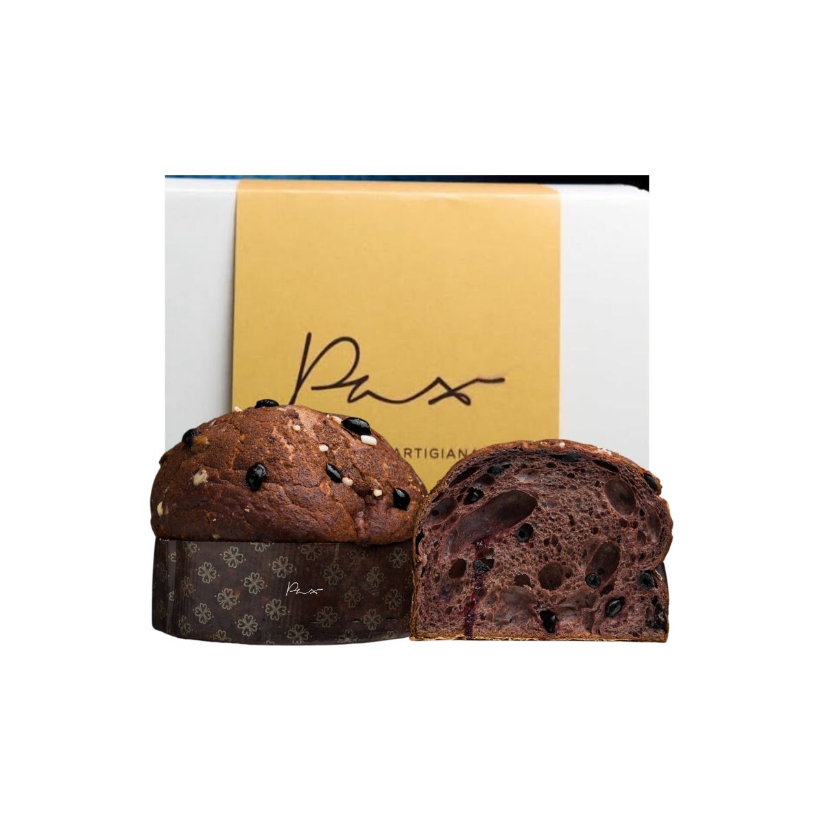 Panettone alle Olive Nere di Lecce Candite Pax: il tributo dell’azienda alla Puglia e alle sue distese di ulivi centenari. È un’interpretazione della tradizione dove la morbidezza di una pasta alveolata dal colore violaceo e la dolcezza di olive leccesi candite incontrano una glassa alle mandorle, in un’esperienza dal sapore rustico.