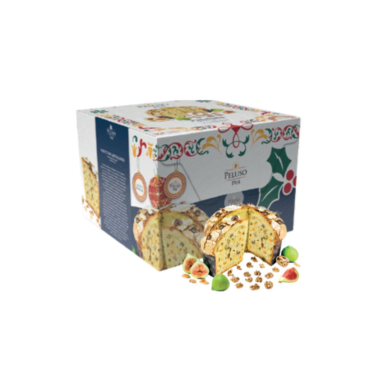 Panettone fichi, noci e moscato Peluso : panettone tradizionale ottenuto dalla lievitazione naturale di 36 ore e da ingredienti accuratamente selezionati. Un impasto leggero, morbido. Un connubio perfetto e insostituibile con un aroma unico e un sapore ineguagliabile.