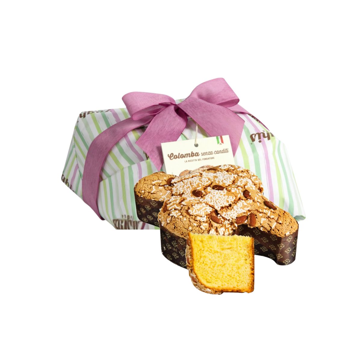 Colomba Senza Canditi Zaghis: lievitazione naturale, ingredienti di alta qualità e un incarto fatto a mano; per ottenere un prodotto unico. Una golosa glassatura, la dolcezza irresistibile della granella di zucchero e la croccantezza delle mandorle rendono ogni morso un’esperienza di gusto. Rigorosamente senza canditi.