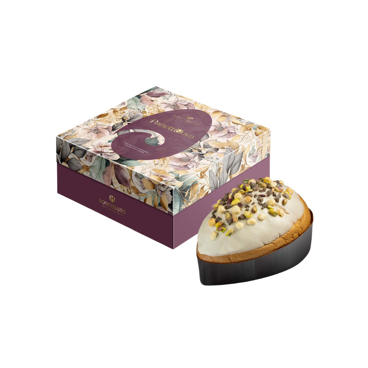 Panettuovo Ricoperto di Cioccolato Bianco, Pistacchi e Nocciole Bonfissuto