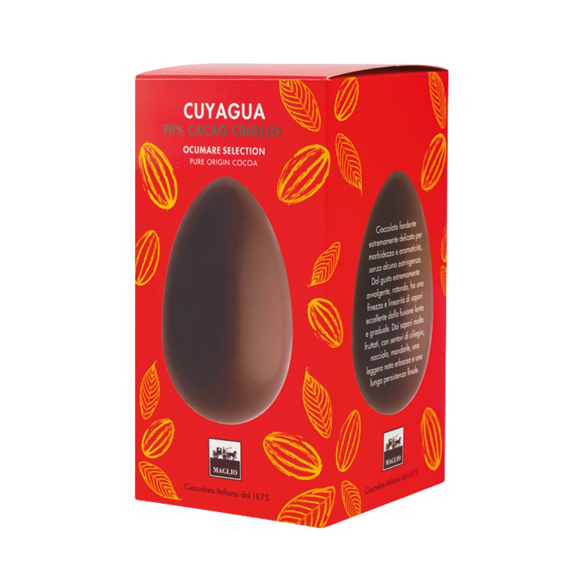 Uovo di Cioccolato Fondente 90% Maglio: un uovo di cioccolato fondente realizzato con pura pasta di cacao Cuyagua. L’uovo giusto per chi ama il cioccolato fondente.