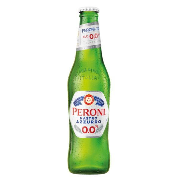 Birra Peroni Nastro Azzurro 0.0%: è la birra analcolica premium lager italiana che vuole conservare le caratteristiche distintive della Peroni Nastro Azzurro originale ma senza alcol. È prodotta con il particolare Mais Nostrano, una varietà 100% Made in Italy , insieme a malto d’orzo, luppolo e lievito. È una birra a bassa fermentazione, prodotta a temperature controllate per garantire un equilibrio perfetto ed utilizza una tecnologia avanzata di dealcolizzazione che permette di mantenere la ricetta e il gusto originale.