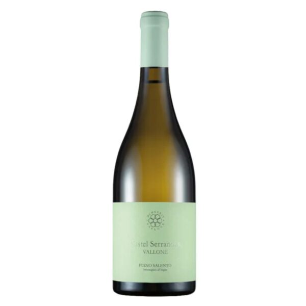 Castel Serranova Fiano 2024 Agricole Vallone: è vino bianco prodotto da uve 100% Fiano e affinato sulle fecce fini per 4 mesi, poi 3 mesi in bottiglia. Alla vista è di colore giallo paglierino con decisi riflessi verdognoli, luminoso, brillante. Al naso è intenso e persistente, complesso, i sentori che emergono ricordano i fiori bianchi, i frutti tropicali, la pera, l’albicocca, si fondono con deliziose note agrumate e balsamiche. Sapore: armonico, fresco, sapido, ben strutturato, di ottima persistenza aromatica. ABBINAMENTO: crostacei, crudi di pesce, formaggi, pesce, sushi. TEMPERATURA DI SERVIZIO: 10-12°C.