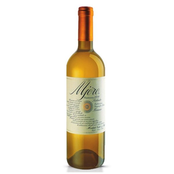 Mjère Bianco Michele Calò e Figli: è un bianco prodotto con uve 70% Verdeca e 30%Chardonnay. Viene affinato in acciaio e lasciato riposare. Presenta un colore giallo paglierino con riflessi dorati. Ha un gusto sapido e piacevolmente fresco. Elegante e di buona intensità. Incanta con il profumo fine, delicato piacevolmente fruttato con sentori di ananas e mela renetta. ABBINAMENTI: primi e secondi base pesce, crostacei. TEMPERATURA DI SERVIZIO: 12-14°C
