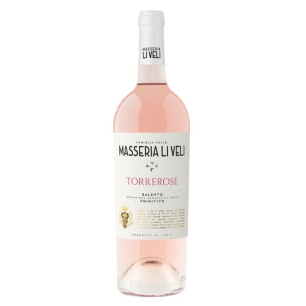 Torrerose Salento IGT Primitivo Masseria Li Veli 2024: è un vino rosato prodotto da uve 100% Primitivo e affinato in acciaio. Alla vista è rosato con riflessi salmone e lampone; al naso è fruttato, delicato con sentori di frutta rossa e fiori. Al palato è armonico, piacevole, voluminoso con una fresca acidità. Retrogusto fruttato. ABBINAMENTI: salumi, piatti a base di pesce, aperitivo. TEMPERATURA DI SERVIZIO: 6-8°C