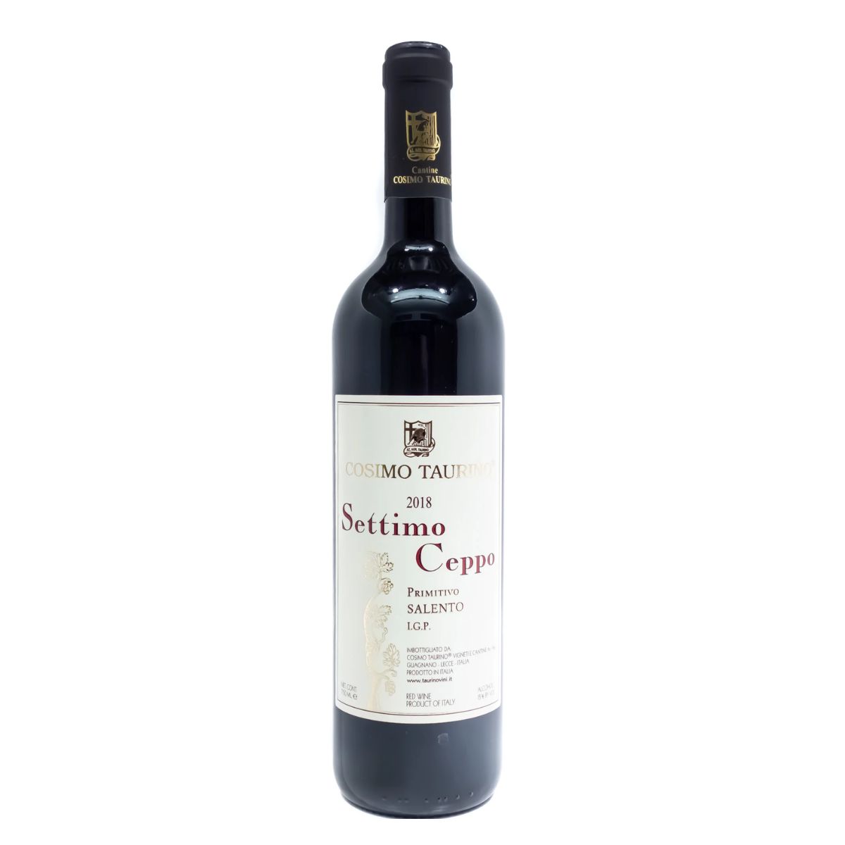 Settimo Ceppo Cantine Cosimo Taurino 2018: è un rosso composto da uve 100% Primitivo, la sua peculiarità è l’affinamento in acciaio, e non in legno, perché esprime tutto il suo potere così, al naturale. Si presenta di colore rosso intenso, con un buquet pieno e sapore asciutto. ABBINAMENTI: grigliate di carne, selvaggina, formaggi stagionati. TEMPERATURA DI SERVIZIO:16-18°C.