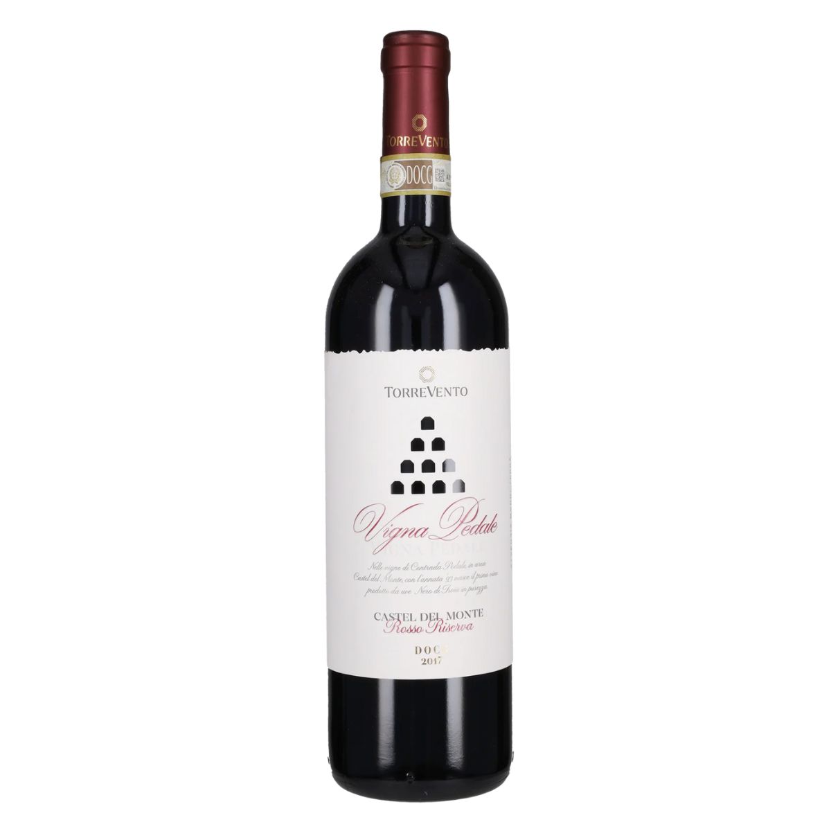 Vigna Pedale Riserva Torrevento 2017: vino rosso pugliese ottenuto da uve Nero Di Troia in purezza e affinato per 12 mesi in botte grande. E’ caratterizzato da un colore rosso rubino intenso, con riflessi granati. Al naso presenta note di piccoli frutti rossi, con un finale speziato. Il gusto è intenso, pieno, di grande corpo, armonico ed elegante. ABBINAMENTI: risotto con sugo di carne, carne rossa in umido, risotto ai funghi, carne arrosto e grigliata, pasta sugo di carne. TEMPERATURA DI SERVIZIO: 16-18° C.